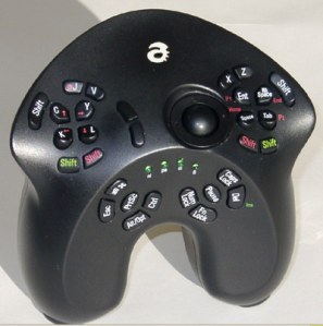 O que é isso? Eu me lembro de ter esboçado essa frase ou ver esse controle a venda em uma loja de informática, uns 4 anos atrás. Era maciço, do tamanho de uma bola de futebol de salão, preto como a danação e tão cheio de botões que uma centopéia teria cãimbras em operá-lo. Um dos donos da loja esboçou que era o melhor controle para jogar no PC, e que ele podia, inclusive, usar sua entrada de rede para transmissão mais rápida de dados. Mas o que diabos alguém pode jogar com isso? Ou melhor, pesando quase 1 Kg, quem pode jogar com essa porra? É impraticável. E como tentar jogar NFL 2008 batendo na cabeça de alguém que bate no saco de alguém que segura o joystick. É simplesmente complicado demais. Acho que a sociedade concorda comigo, pois até imagens do Alphan são difícies de achar na Net… o controle, graças a todo o cosmo, entrou em extinção.