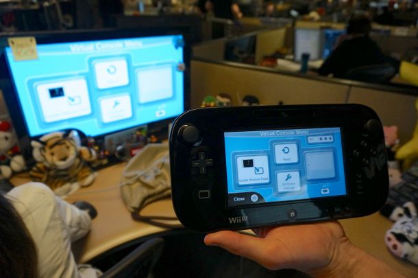 Assim como no Virtual Console do 3DS os jogos do Virtual Console do Wii U poderão ser salvos, a qualquer momento, literalmente paralisando o jogo e criando uma chance de prosseguir daquele exato ponto. O Wii meio que fazia isso com alguns jogos, mas era mais uma facilidade do sistema que uma opção completa e constantemente funcionava mal ou não funcionava. O novo sistema tem um menu de save state por jogo e permite salvar com segurança em qualquer lugar. É o fim das horas para achar um save point.